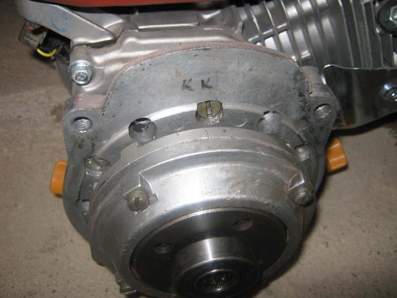 Siis sai vana mootori küljest maha võetud otsa flants PILDIL märge KK markeriga tehtud), millega mootor kinnitub käigukasti külge.(kui mootorit ei ole siis tuleb treialil rohkem vaeva näha ja otse käigukasti ja mootoriga jännata) Selle mootori poolse otsa ja uue mootori otsa vahele tegin vahetüki (PILT) Treipingis ei teki ka tsentrite paikapanekul probleeme kuna mootori poolsel flantsil on ka ümmargune sisu.