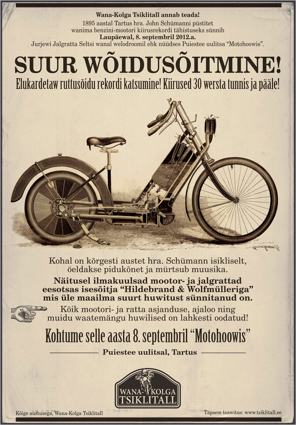 Kes oma hinge eest hoolt kanda ehk wana asja meelde tuletada tahab on poolkohustuslises korras oodatud laupäewal, selle issanda aasta kaheksandamal septembrikuu päewal Tartusse Puiestee uulitsa Motohoowi.