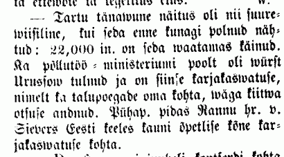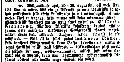 Ürituse eelinfonupuke ajalehe Neue Dörptsche Zeitungi 23. augusti (4. septembri) numbris: