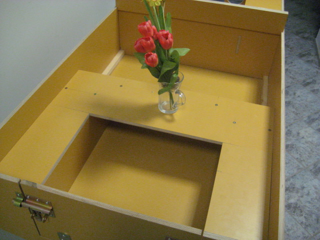 Välja lõigatud Klavises 12mm veekindlast vineerist. Kokku on pandud liimi ja kruvidega.
