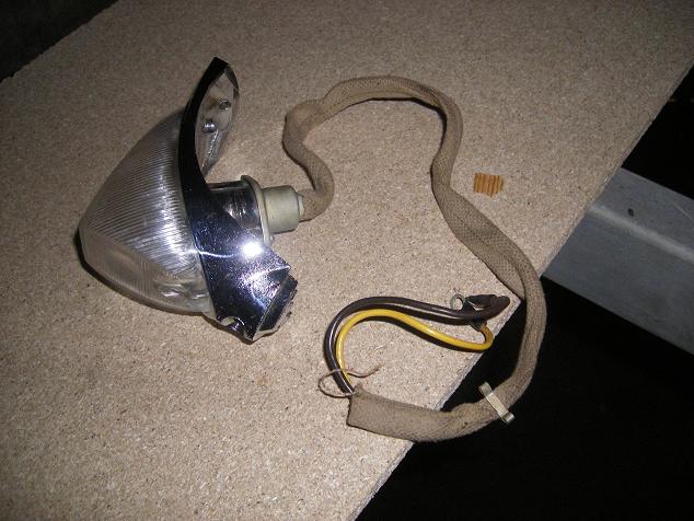 Это подфарник от Москвича 403ИЭ судя по тряпочной(textil) оплетке провода, на поздних моделях(65-74) уже было из ПВХ(PVC)