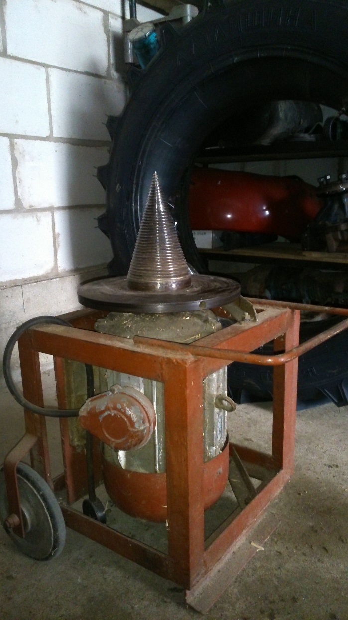 Jääb üle koonusega puulõhkuja. Koonuse pikkus 25cm, masinal on ka inertsi lisamiseks hooratas. Mootor on 7 või 7,5kw. Ei mäleta enam, aga kontrollin üle. Sai väga eduliselt hakkama ka igasugustest raskema profiiliga pakkudest.  Asub Otepää lähedal ja kontakt: PS või 51934170