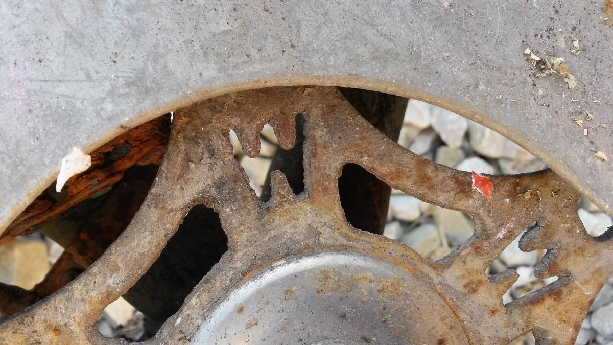 Jälle vajab tuvastamist üks tundmatu looma nahk. Meesteratas. Silt eest kadunud, aukude vahe 57. Ketihammasrattal stiliseeritud täht W.
