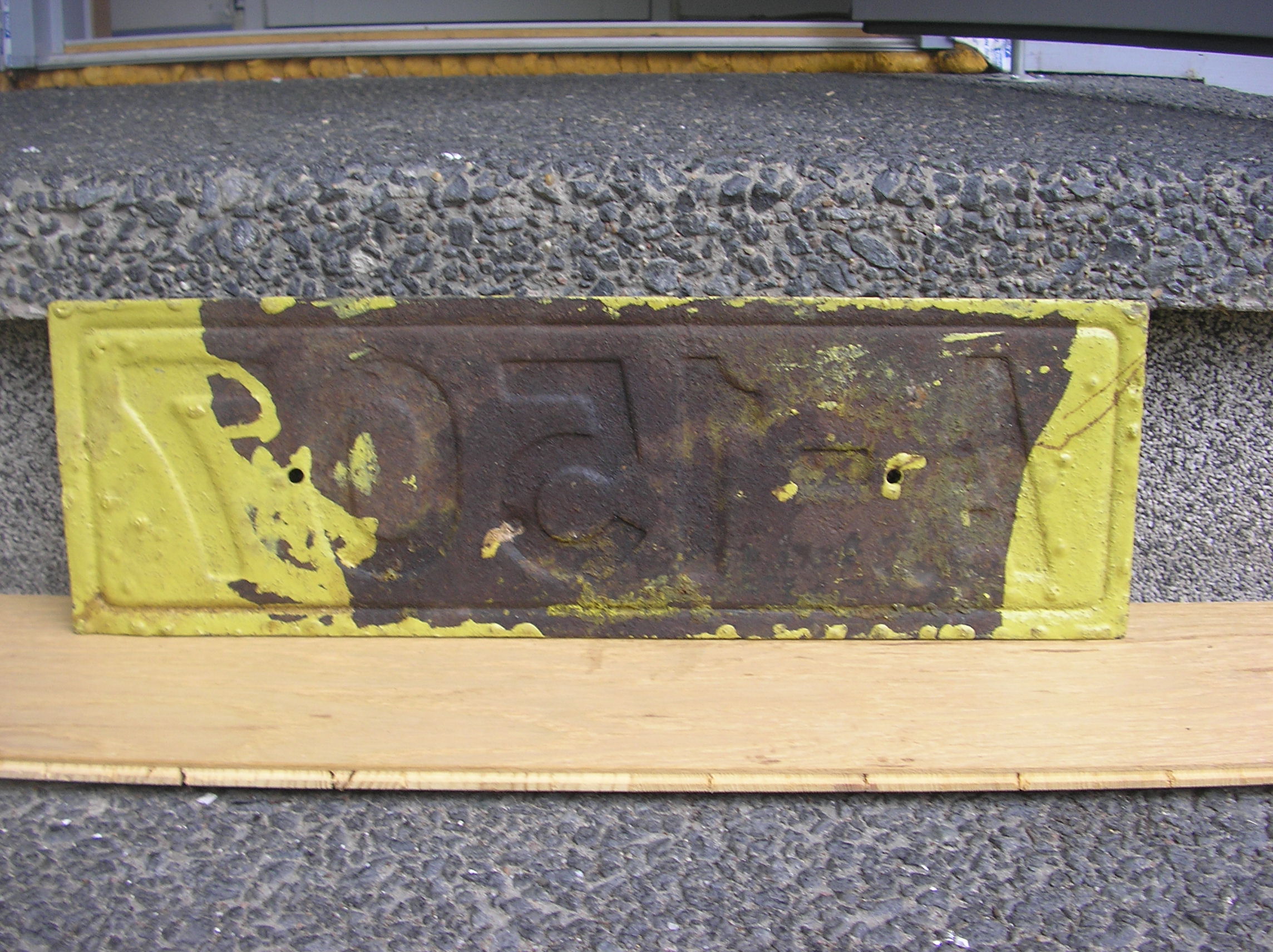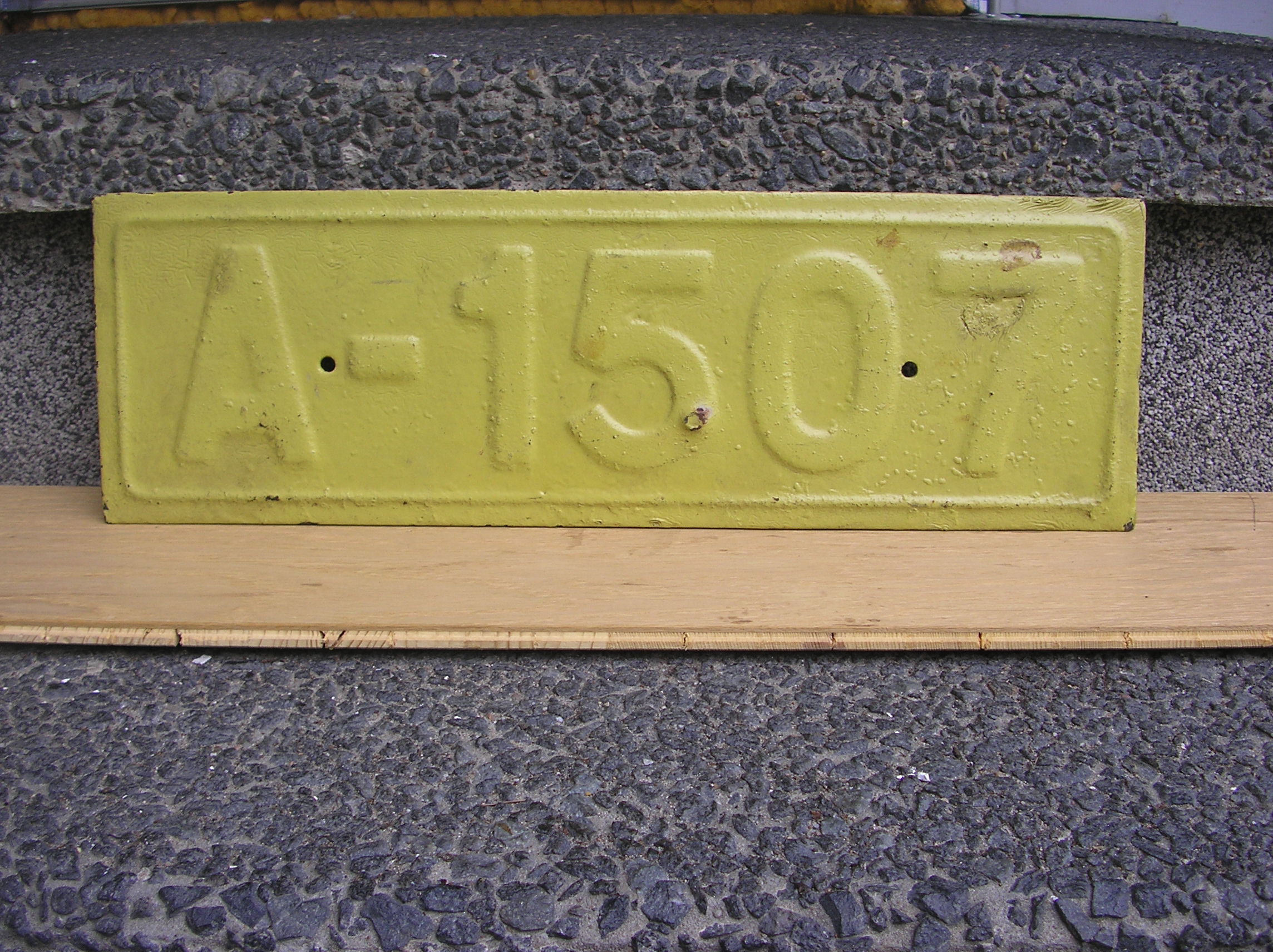Väga auto numbri moodi, paksust plekist stantsitud. 2-3 millimeetrit umbes