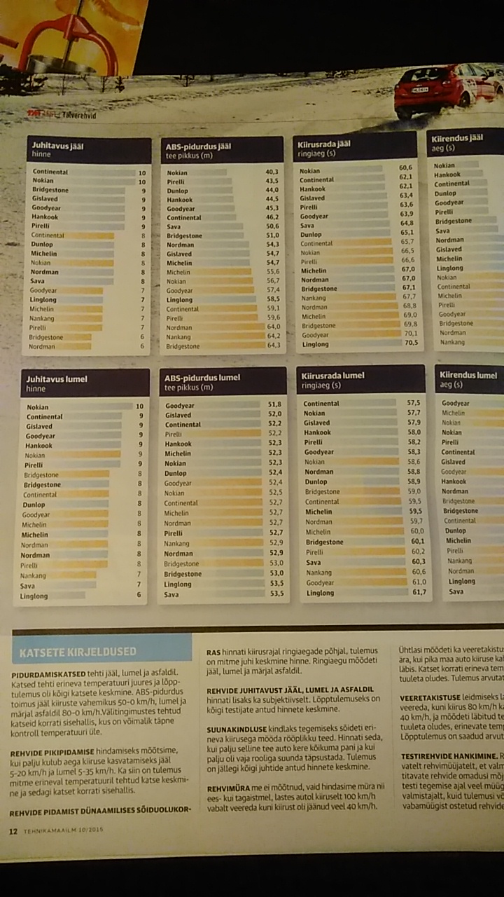 Selline mõte tuli sellest, et ega kusagile veega kaetud kiilasjääle eriti asja pole mul selle autoga, peamiselt linn ja suured ning keskmise suurusega maanteed. Ei vitsi kaubikus seda naastrehvide undamist kuulata, nii et raadiotki ei kuule korralikult. Tagant kongist tuleb ikka korralik undamine naastudega muidu, eriti puhtal ja kuival asfaldil sõites (mida paraku enamik sõite on). Ja ega naastud hästi sees ei püsi ka mul, kui juba paljud neist väljas on, siis on pidamine igas olukorras kehvem kui lamellil.Kuidas kellelgi kogemus on naastude pealt lamellidele üleminekul? Millistes oludes teisiti käitub, pakkus mingeid üllatusi?