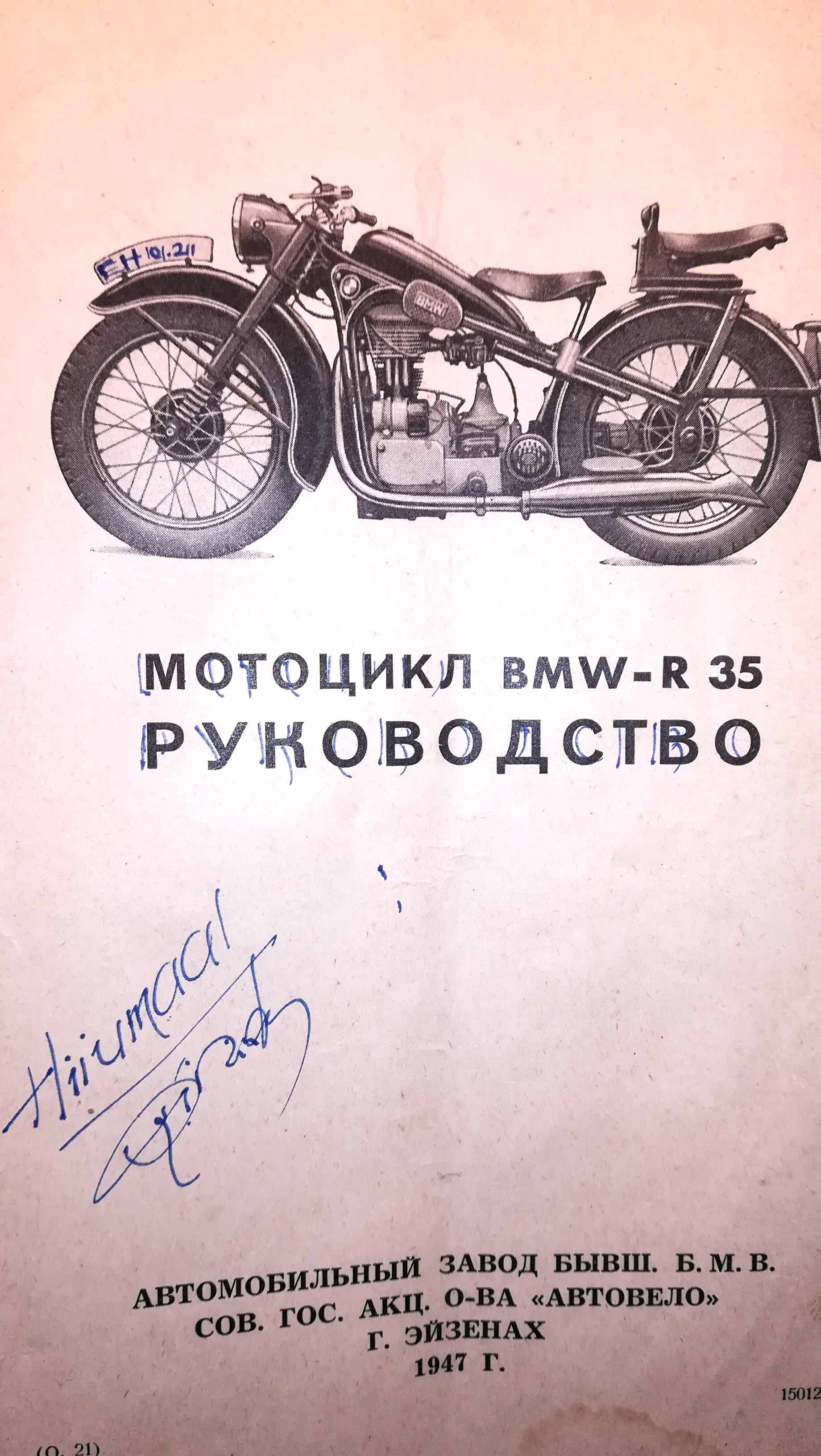 Sattus too venekeelne 1947 kirjatükk koju. Raamat nagu ikka, aga esilehele on keegi kirjutanud "Hiiumaal" ning autogrammi ja ratta numbrimärgile kritseldanud "EH101.211". Viimast lehte kannavad laulu "Rannakolhoos" salmid, tuntud pigem fraasi "See paat ei ole tehtud linnuluust" järgi.