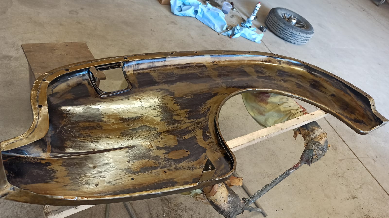 Pange tähele et tagumine vasak tiib on uus ja oli juba värvitud ja nii et kõigepealt punane krunt siis kollane ja pärast must krunt.